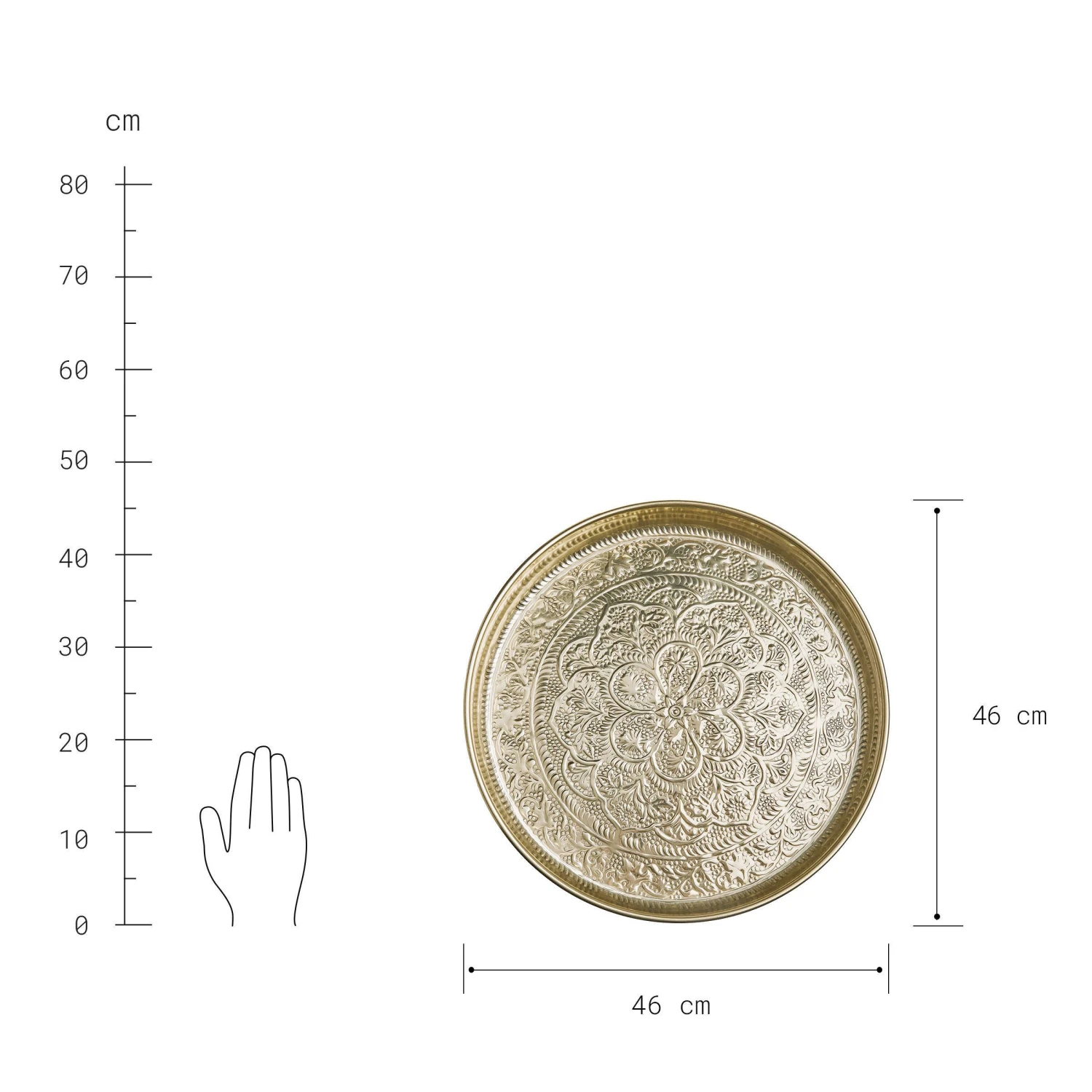 Mit traditioneller Hammerschlag-Optik und 46 cm Durchmesser setzt das Oriental Lounge Deko-Tablett aus Eisen ein schimmerndes Zeichen auf Ihrem Tisch oder Ihrer Anrichte, z. B. geschmückt mit Kugeln, Tannenzapfen oder Kerzen.